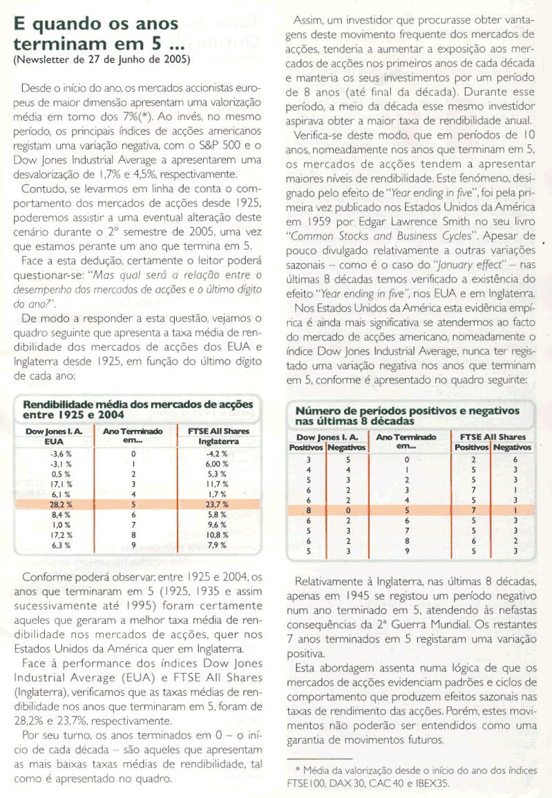 Fica aqui uma newsletter de 27 de Julho de 2005 onde é abordado o fenómeno dos "Year ending in five"…