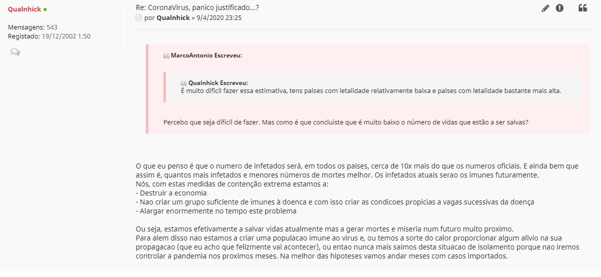 Podes indicar-me onde, nessa altura, tu indicavas que existiam, no mínimo, 10x mais infectados? Não me recordo disto, podes indicar por favor?
