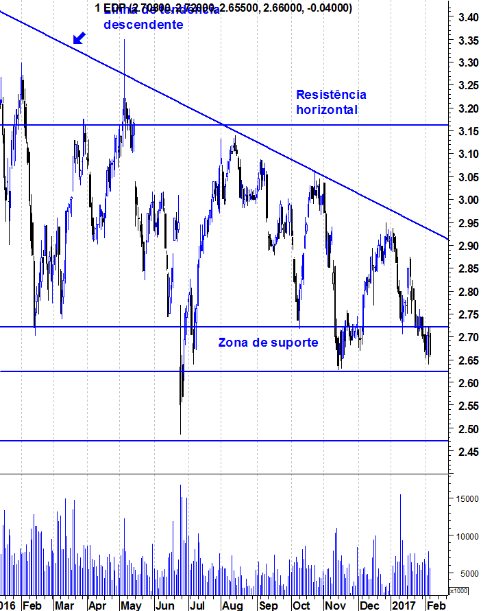 Deixo aqui como eu estava a ver a EDP. O que tinha na mente era procurar por uma oportunidade de reverter a tendência descendente.