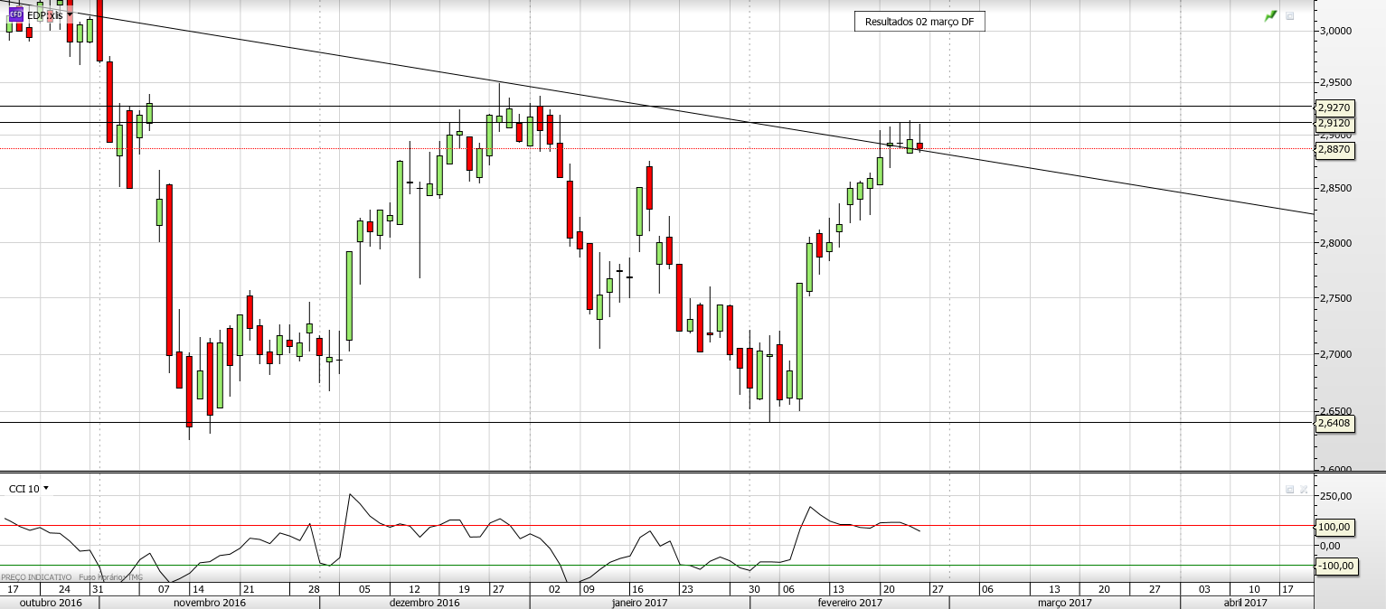 Eu parece-me que o interesse que foi referido, seria para uma entrada curta na EDP. Encontra-se mesmo em cima da linha descendente, por isso tem boas probabilidades de recuar de novo.