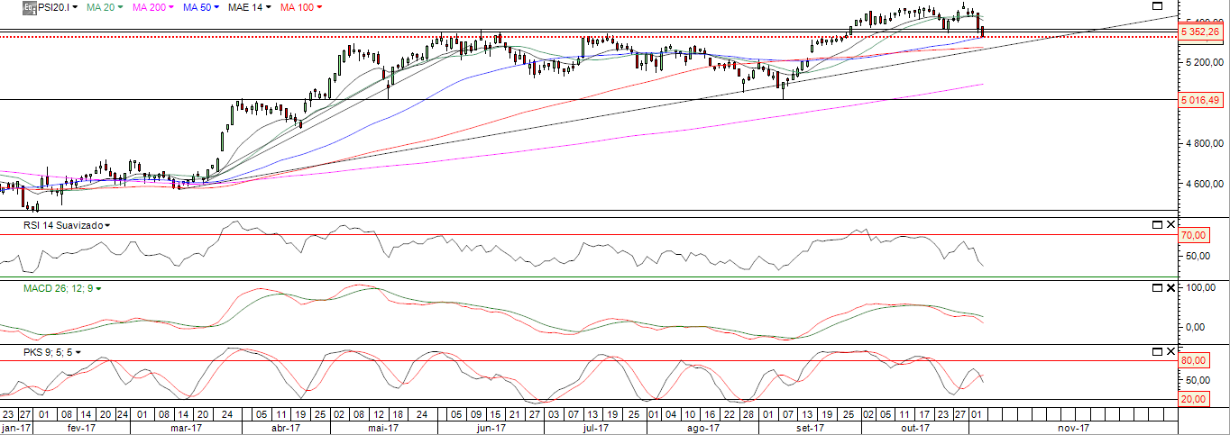 O PSI está agora na linha de defesa do critico suporte dos 5350 , anterior resistência .