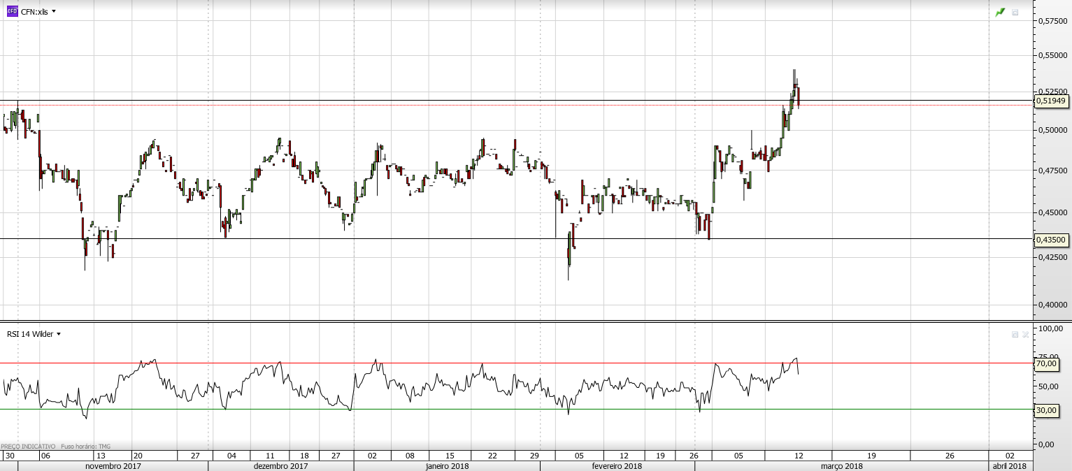 O quadruple witching já se faz notar nesta cotada. Os fundos já estão a refazer as suas carteiras e a COFINA é aposta para 2018, pelos volumes destes últimos dias. Tal como o Salvador Guru só penso vender a minha posição ao dobro da cotação atual, no mínimo. A equipa de gestão é fantástica (vejam o trabalho efetuado na Altri e F.Ramada, duas tenbaggers, será a COFINA a terceira?) e ainda que existem dificuldades no negócio tradicional, nunca deu prejuizo nestes anos. Esperamos a divulgação do relatório e contas, em inicios de abril provavelmente, para ver já o impato das apostas nos resultados da empresa.
