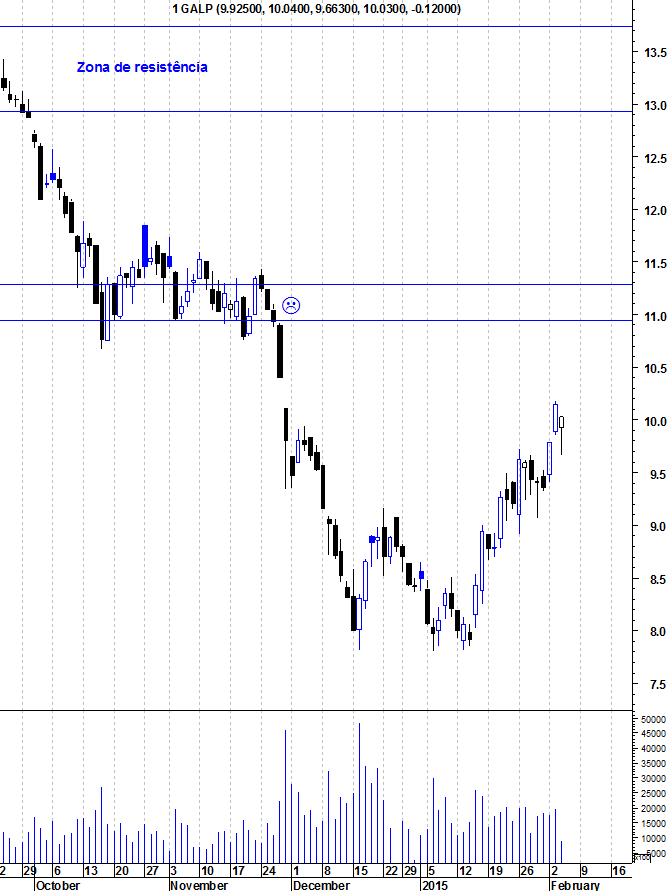 Aqui ficam os gráficos actualizados da Galp numa altura em que a acção caminha para a sua primeira grande resistência.