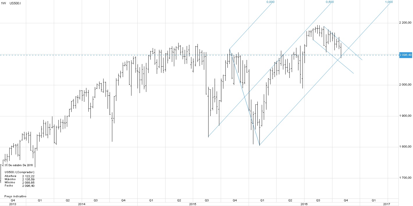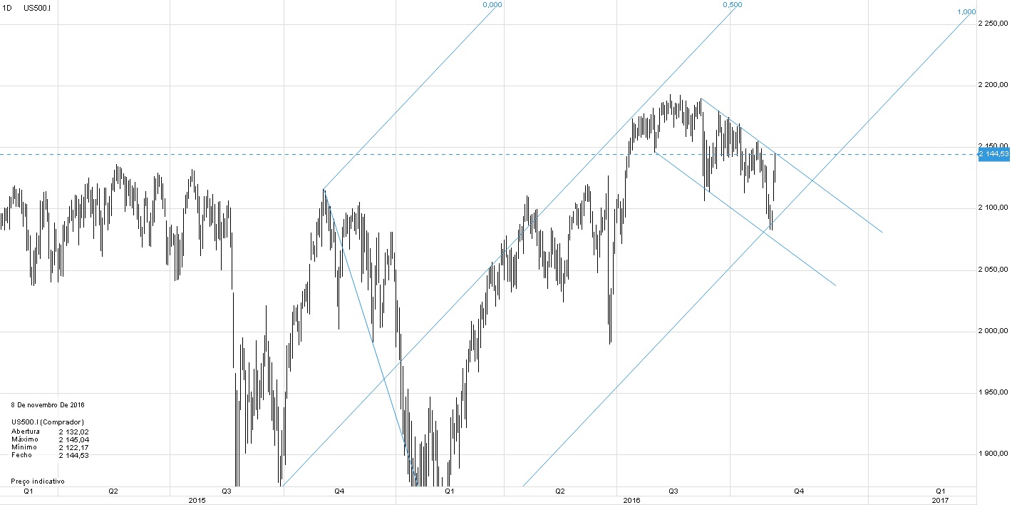 Ele afirma que a extrapolação de dados apontava para um movimento potencial de queda de cerca 10% se ganhar TRUMP e subida de 5% se ganhar Hillary o que basicamente coloca esses pontos na grandes zonas de Resistencia e Suporte de longo prazo do SP. RESIST 2200 SUPORTE 1880.