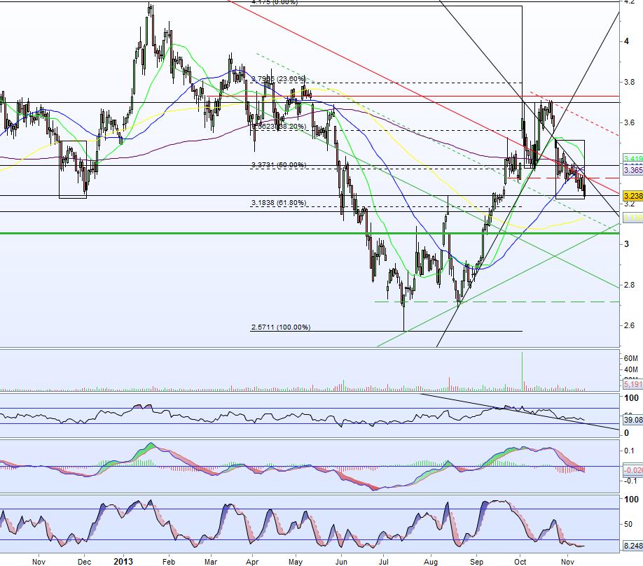 A descida de hoje é residual. Todos os gráficos apontam para norte. Se descer abaixo de 3.10 temos os ursos á porta. A minha posição na PT mantêm-se.
