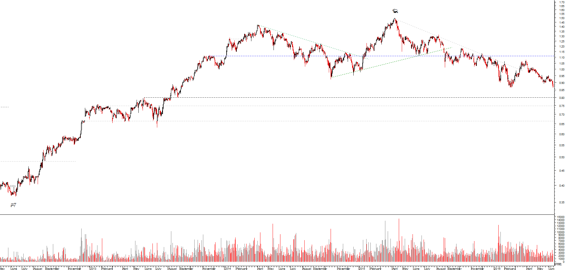Podemos dizer que o suporte dos 0.80 foi quebrado? E que daqui para baixo só para nos 0.60.....