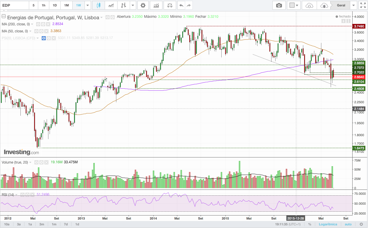 Não está fácil para longos, o suporte dos 2.7€ parece não ter aguentado, e os suportes seguintes na zona dos 2.4-2.6 remontam a finais de 2013/inicio de 2014