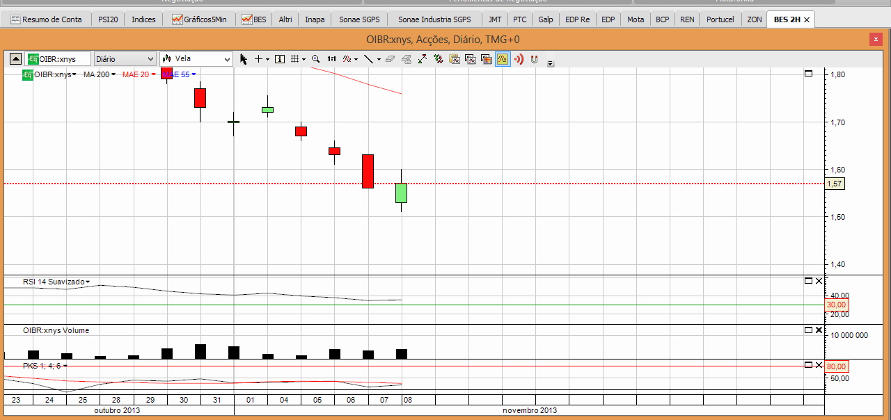 A OI aguentou a linha, com o Bovespa a descer(+-0.7%)