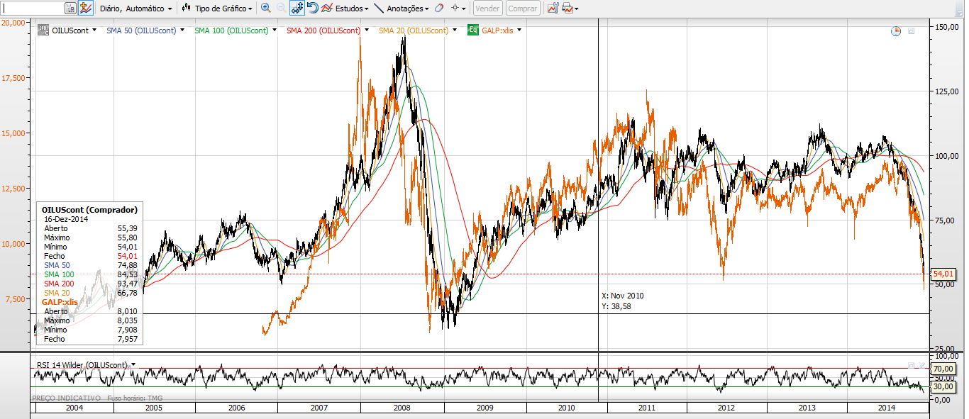 Uns posts acima é possível ver num gráfico a evolução do petróleo com a GALP e é bem claro que se o petróleo continuar a cair a GALP vai atrás.