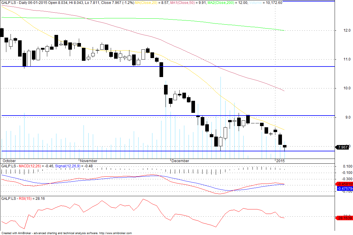 eu entrava curto a galp na atividade de refinação e distribuição nao vale 8 euros, se o petroleo continuar a cair as reservas no brasil valem 0 por isso a GALP está cara e incorpora uma probabilidade de que o petroleo venha ainda a recuperar,