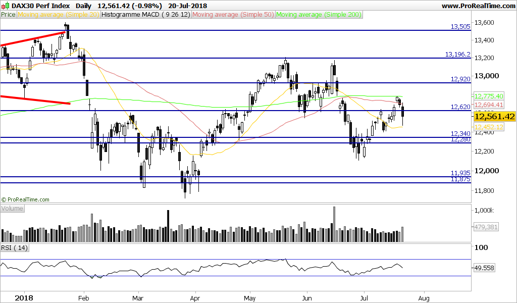 DAX faz novamente uma recuperação até á forte barreira na MM200 nos 12770 e para já dali naõ consegue passar