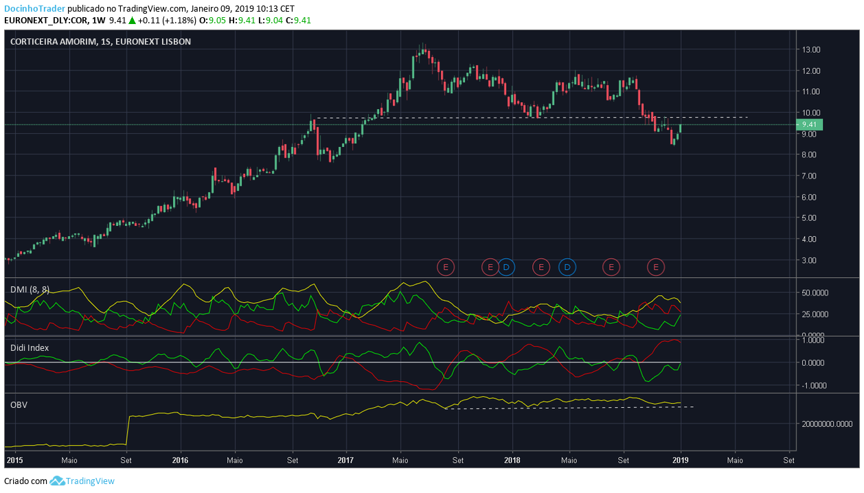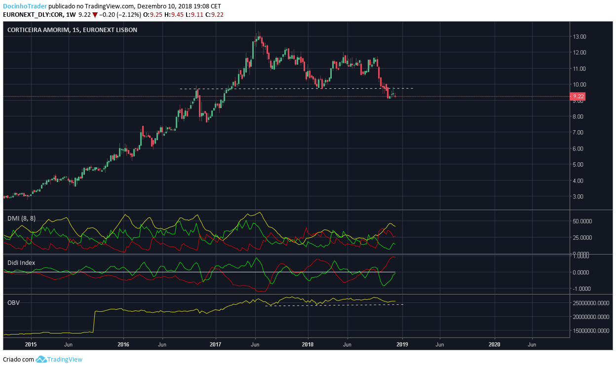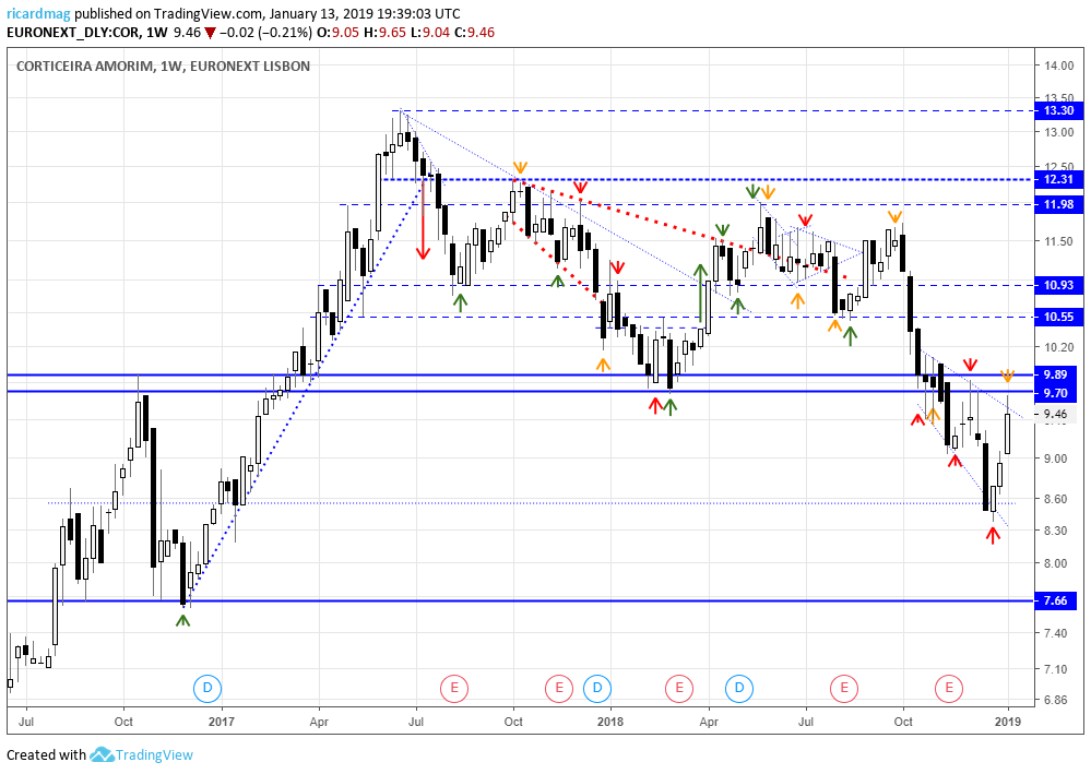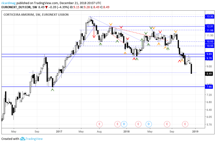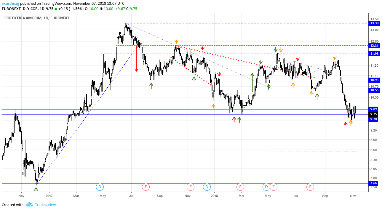A corticeira já viu dias mais fáceis,o preço tem andado debaixo do suporte,no entanto sem aceleramento do mesmo.