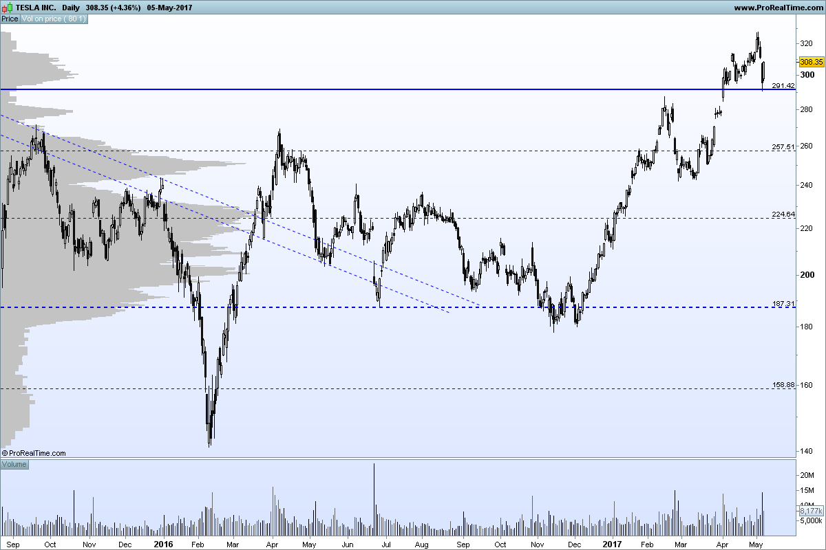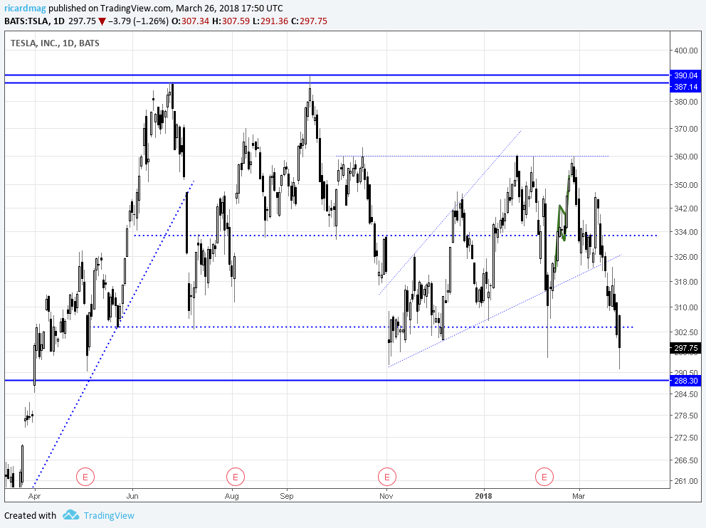 Após fecho de posição curta num banco do Ibex, vou shortar Tesla. Posição mínima possível de 1 contrato via E-trade, com Ask favorável, e com stop apertado equivalente a 314,5$, target teórico a 228$, mas fecharia nos 267$ (What goes around comes around). Sou fã da marca mas não da cotada e mesmo que fique escaldado não deixarei de poder vir a ser um User.