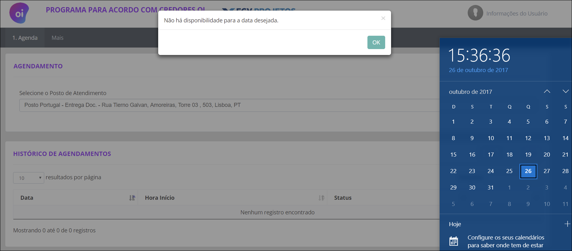 Já não permite de novo qualquer agendamento!!!!