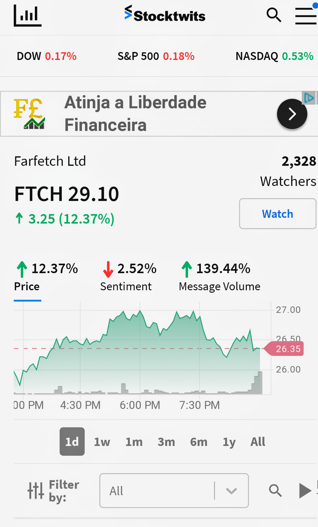 Entretanto a FARFETCH já esteve a subir mais de 20%. Hoje.