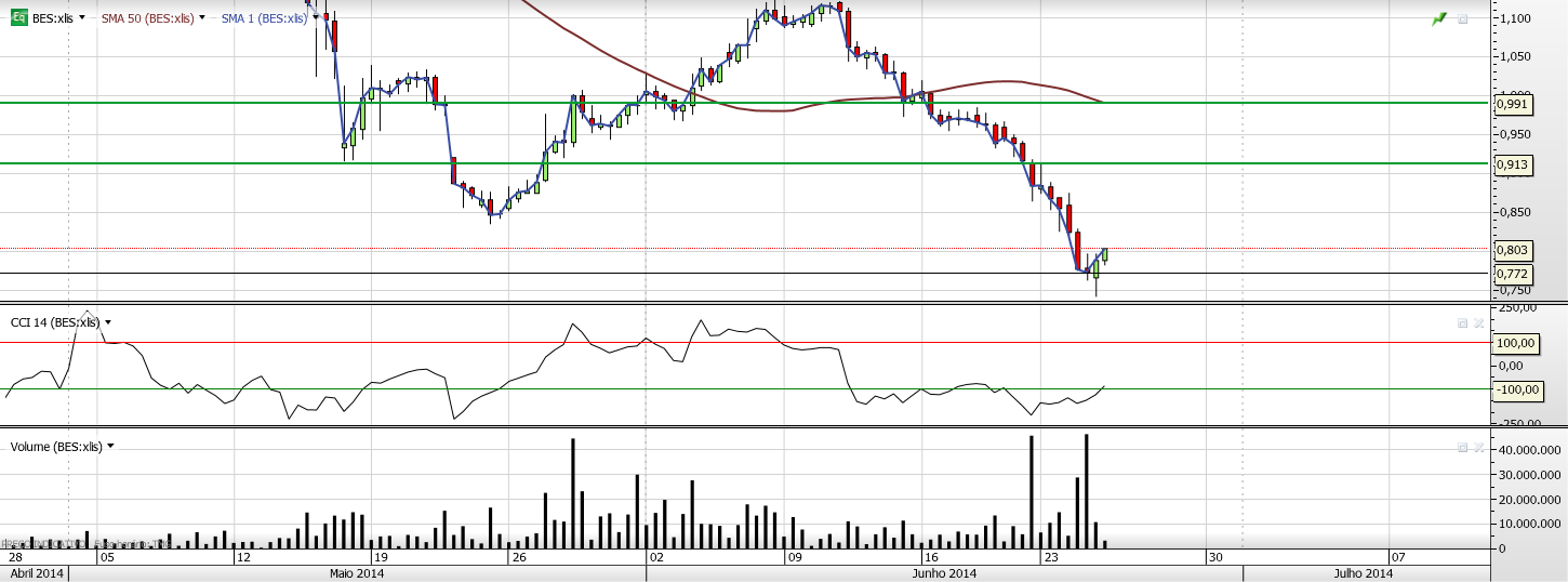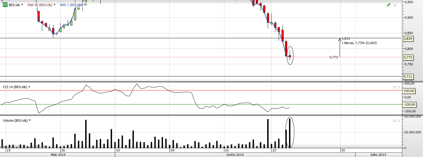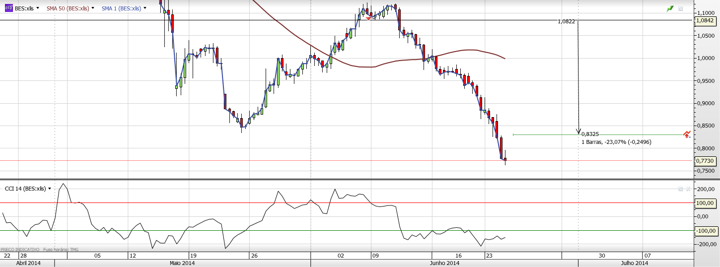 Ao aceitar este nível de risco, tenho a convicção que a cotação BES deverá brevemente dissociar-se do incontornável tombo do BCP, inicialmente por via de um ressalto.