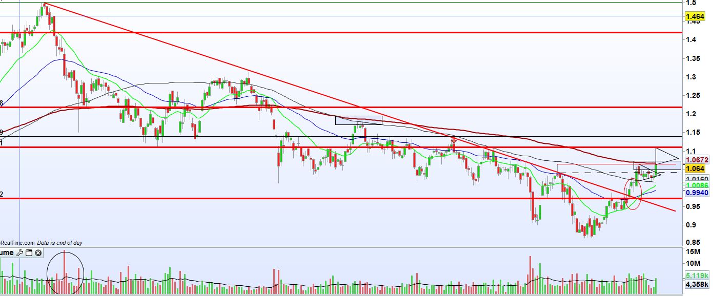 Muito pouco volume, aliás em toda a nossa bolsa, mas continua a tentar passar para o outro lado do 1 €...