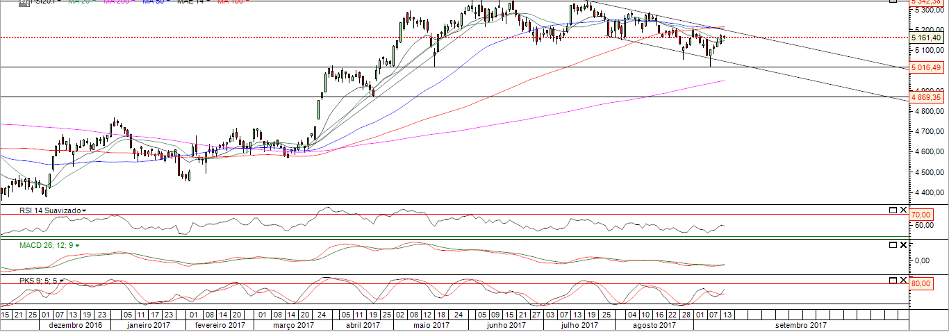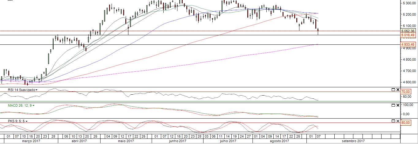 O PSI está numa zona de suporte muito sensível entre 4900 e 5020.