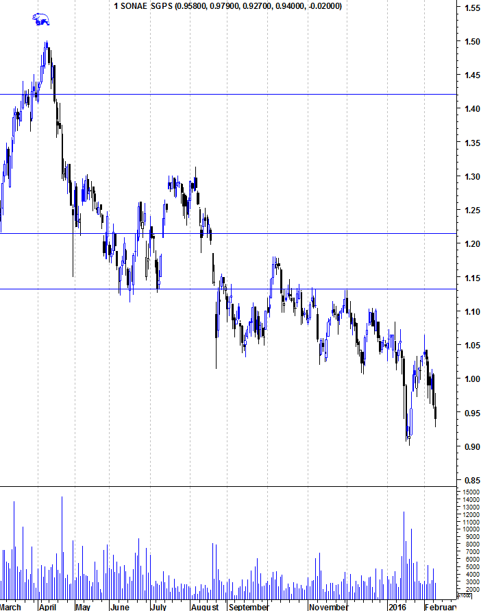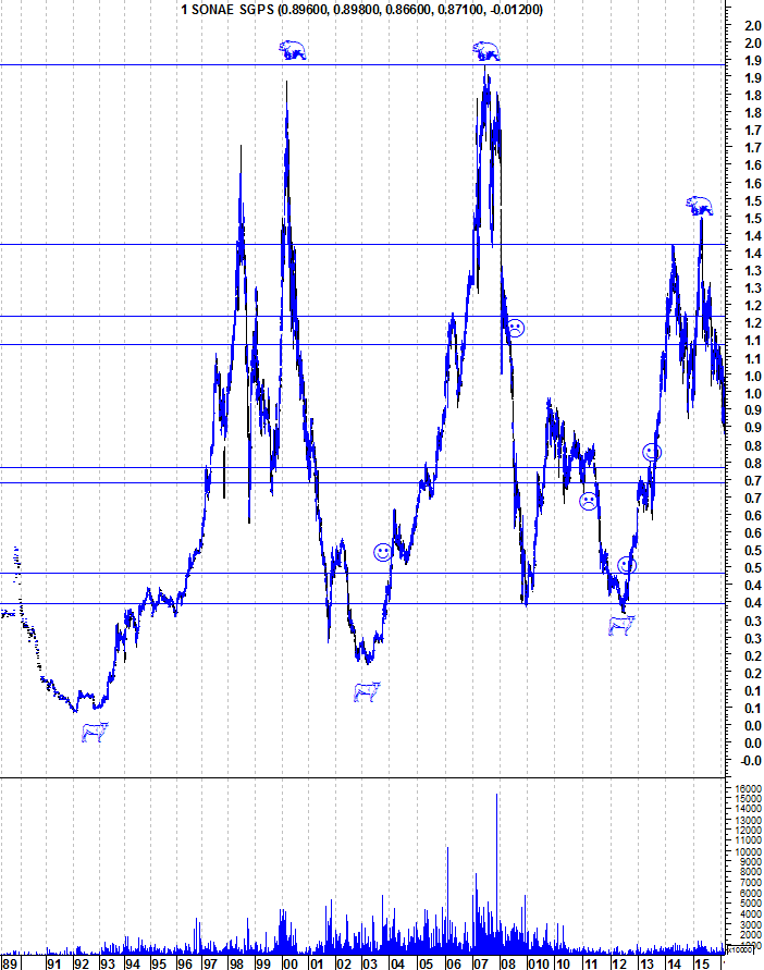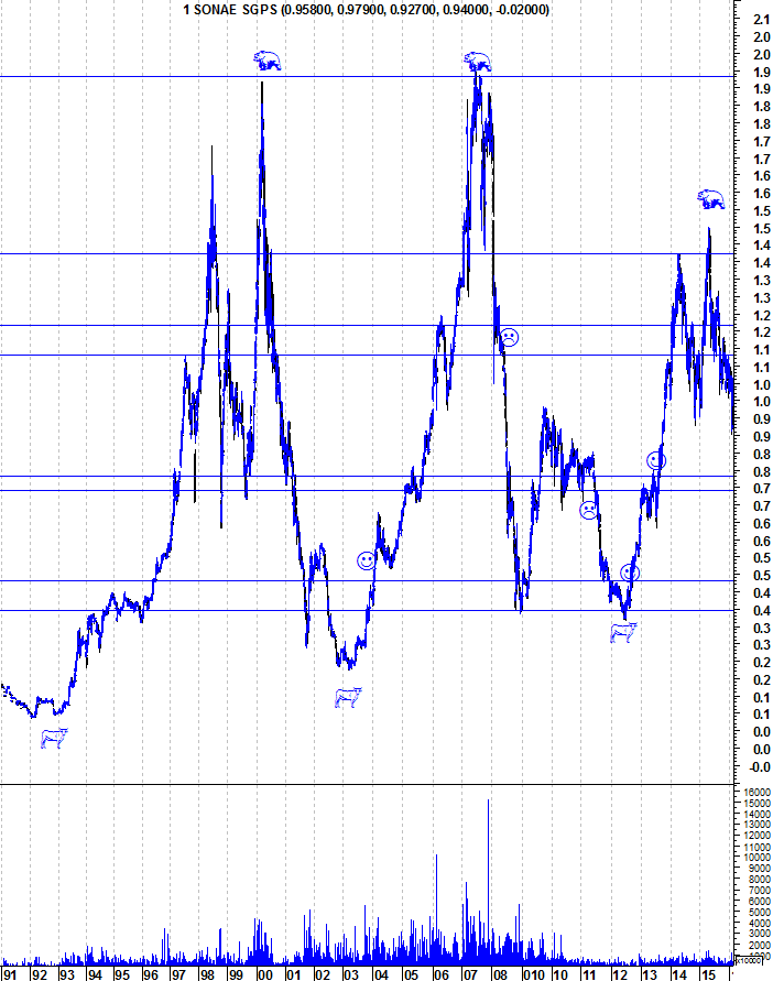 Na correcção anterior ( Abril 2014 a Dez/ 2014), a sonae ( max 1,45) a caminhar para 0,65 foi parar a 1,5! Com um padrão de descida semelhante, vamos ver se consegue ultrapasssar os 1,5!