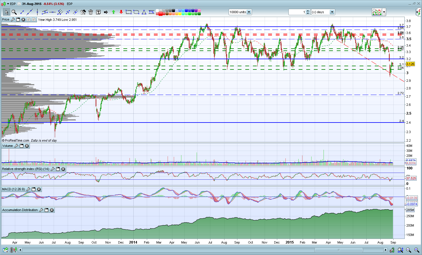 A EDP está numa zona de suporte de médio prazo importante, por isso muita cautela na hora da compra. O risco é grande ...