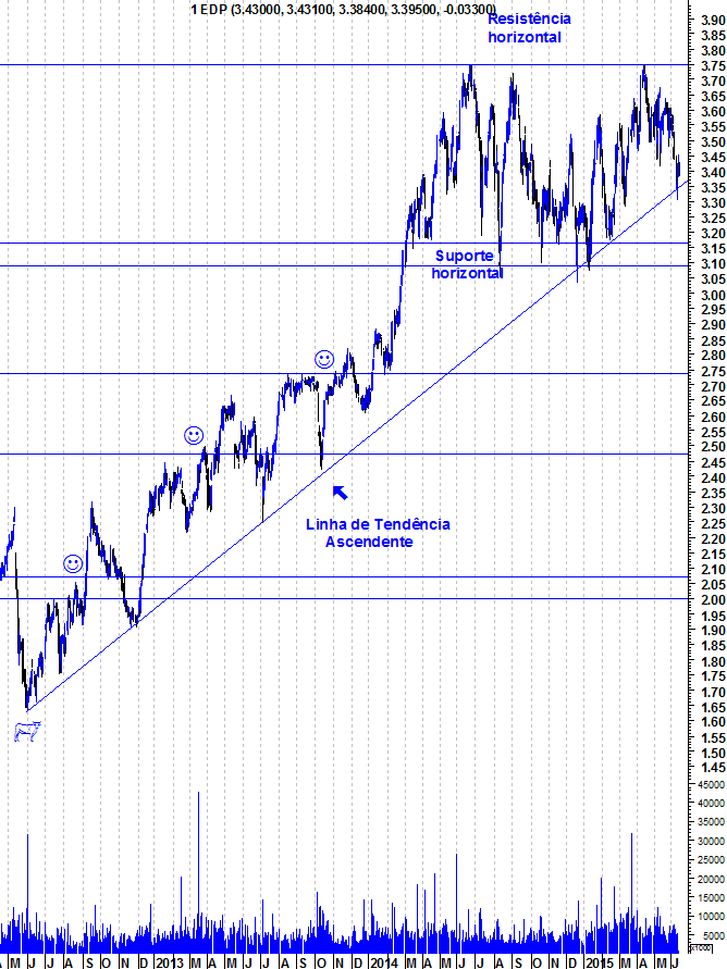 Ulisses Pereira Escreveu: Curiosamente, a EDP está agora em cima da linha de tendência ascendente que tem suportado o actual "Bull Market"