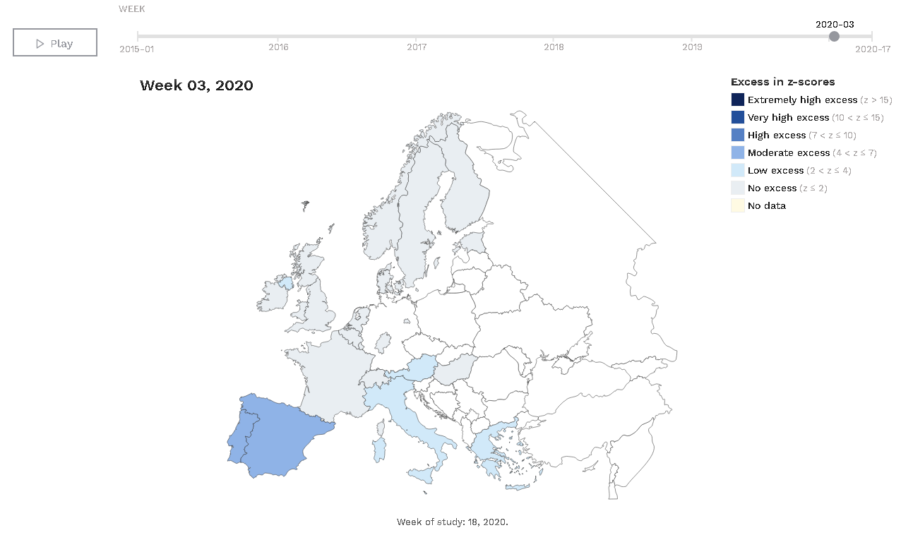 Podes ver aqui individualmente para cada país do grupo europeu que faz parte do projecto euromomo/flumomo: