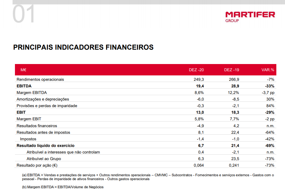 Caríssimos, é obvio que a Martifer é uma acção que está para subir e PESADO, é claro que ainda vai levar algum tempo, se não vejamos e façamos uma comparação com algo parecido com ela, Ramada, contas de 2020: