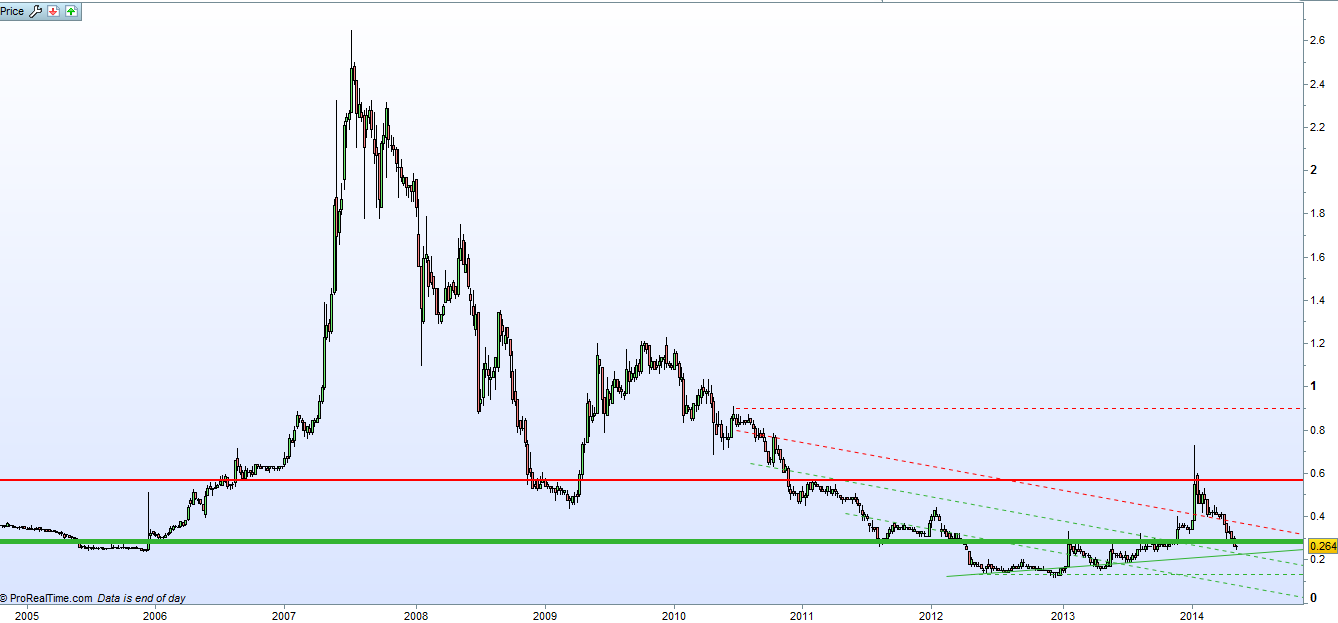 suporte nos 0,24-0,26 o melhor stop seria nos 0,23.....