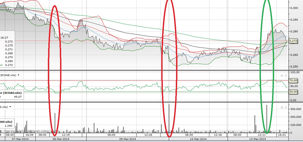 4 pensas nalguma estratégia?? um exemplo aproveita um pico coloca uma ordem de venda da posição por exemplo nos 0,25 e quando a venderes coloca uma ordem de compra a 0,23, isto é um exemplo. é que alguém me dá a entender pelos volumes que anda a fazer isso compra 205.000 e depois vende mais alto.