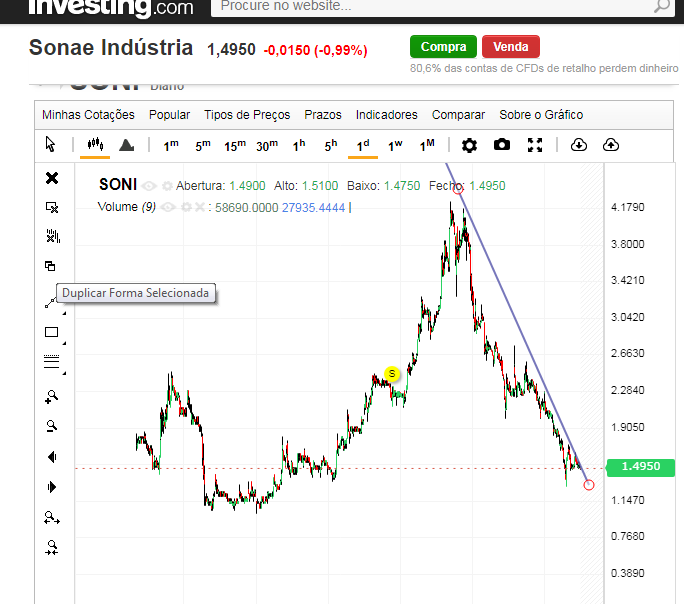 Atendendo ao provável retorno é provavelmente a acção mais a desconto, mas não te iludas, não passará a linha sem que os ursos mostrem um último fôlego que poderá trazer de novo a acção a 1.30.