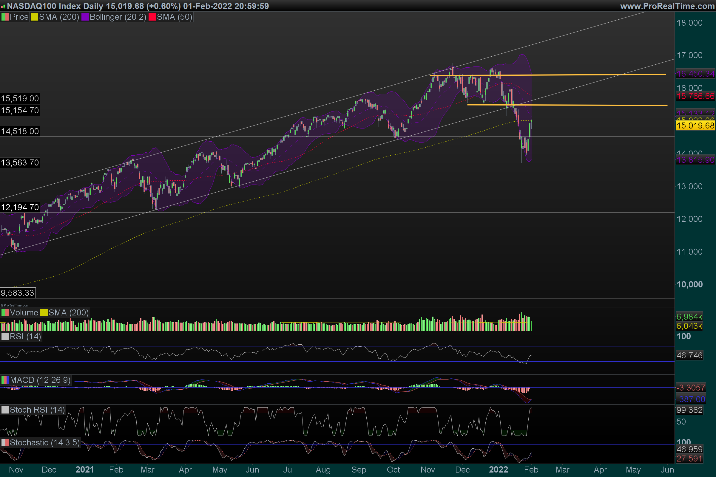 deixo abaixo uma análise técnica ao nasdaq 100 melhorada, por ser melhor pensada, em relação à análise deixada ontem aqui no tópico e que foi feita um pouco à pressa e a "olho".