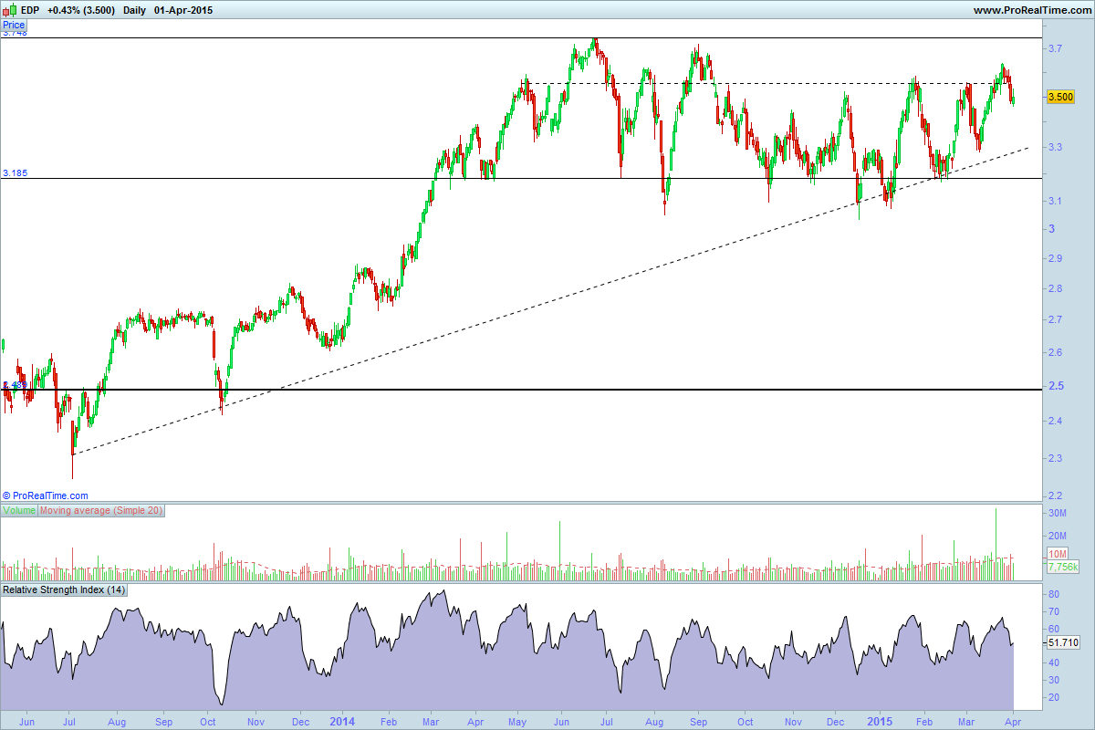 Muitos estão aguardar a reacção da EDP, rompimento ou não? Após esse momento,é que os investidores que continuam na EDP( curto/médio prazo) e aqueles que desejam entrar, vão actuar.