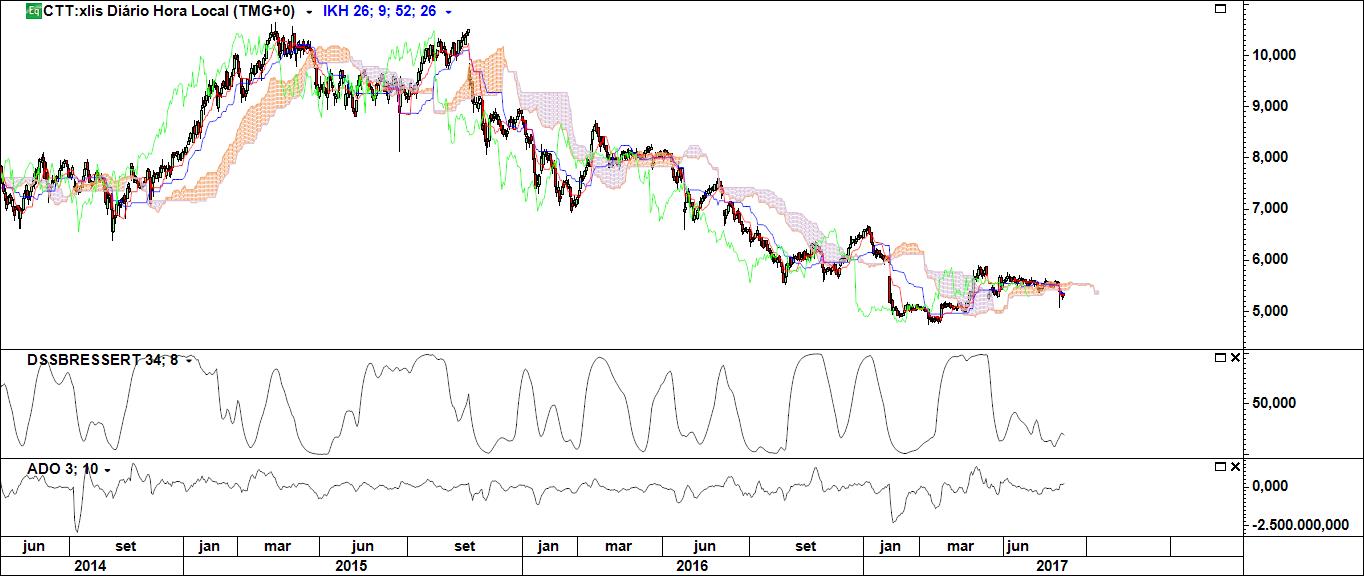 Infelizmente os ctt continuam bearish e como referido á umas semanas atras que,o resto eram desvaneios da cabeça dos investidores/especuladores,continua a tendencia descendente.Agulhada de venda no diario e semanal,alias desde a quebra 10€ nunca tivemos qq compra no diario ou semanal.Penso que em breve iremos visitar os 4€.