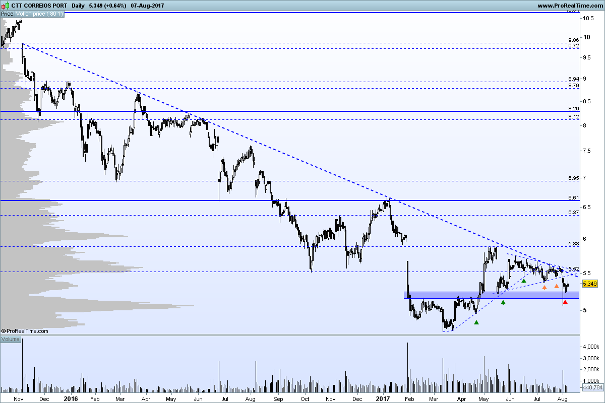 trend=friend, enquanto não passar em fecho e com volume 5.50 não teremos nada de novo. Os CTT continuam a ser dominados pelos ursos.