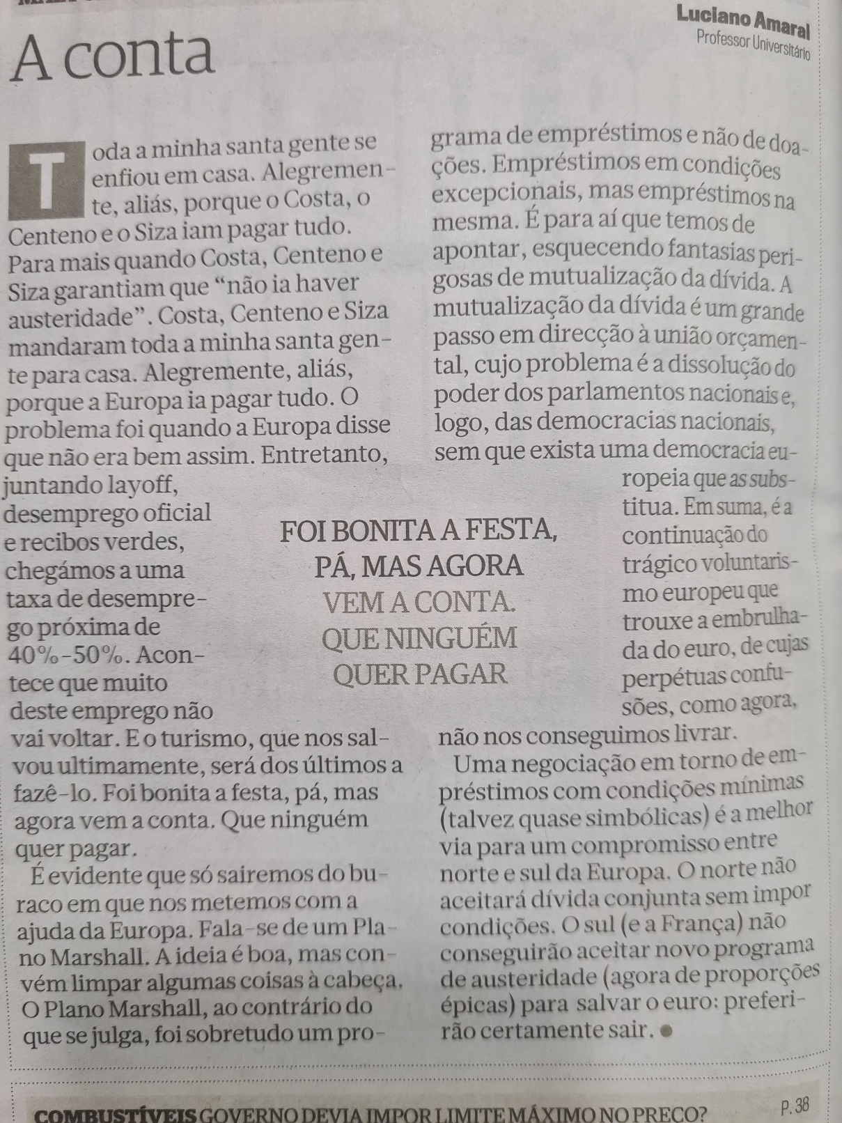 Eu percebo que as pessoas se queiram defender de deturpações e descontextualizações (eu próprio tive a necessidade de fazer o mesmo) mas vamos, na medida do possível, seguir em frente senão o tópico não sai disto.