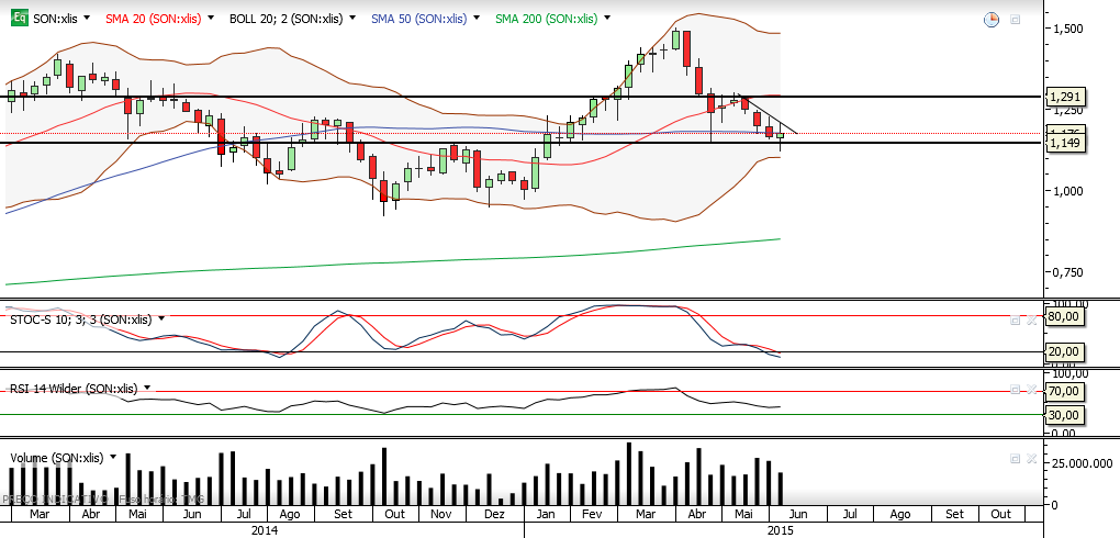 Que mau aspecto tem a sonae,ainda continuo a aguardar entrada :( No dia 29 maio a sonae fez um novo cruzamento descendente das medias moveis(3,8,20) no grafico semanal o que passei de emocional "comprado" para "vendido",ou aguenta por aqui alguns dias ou se descer uns pós mais, será para shortar.
