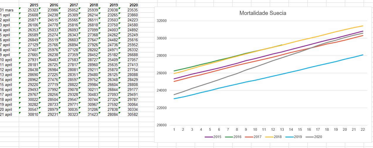 Até 21 de Abril, pelos dados oficiais, desde o inicio do ano na Suecia a mortalidade está abaixo de anos anteriores, ponto final !!!