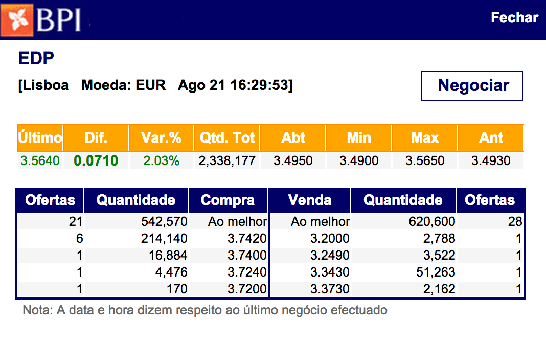 Porque vejam bem. De um lado temos um indviduo que está disposto a vender as suas acções a 3,20, qd temos os 3,5640 como o último negócio e 3,7420 como 1ª oferta de compra...
