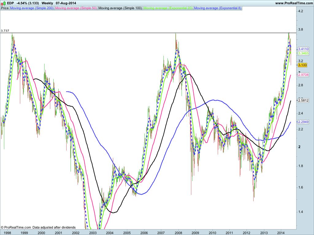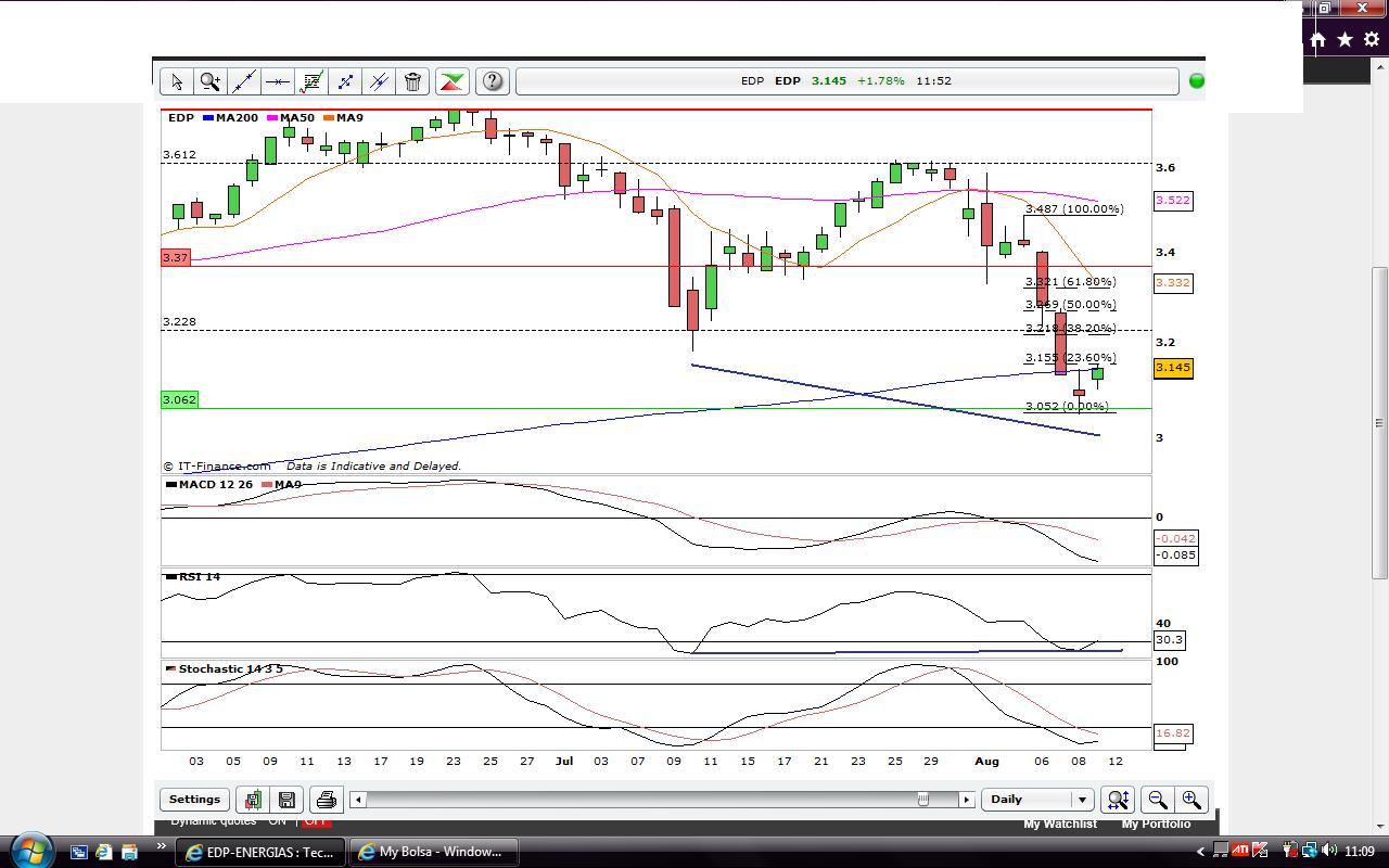 Quanto à EDP, penso que irá reagir nos 38,20 Fibo como tem feito sempre nos últimos bull markets com uma precisão de relógio suiço. Neste caso na zona dos 2,93.