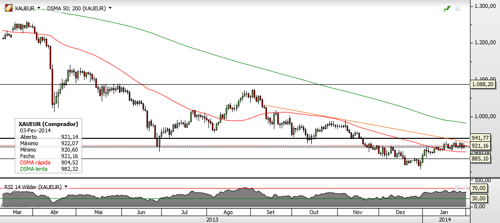 Par Xau/Eur em lateralização no intervalo entre 905,00 e 940,00.