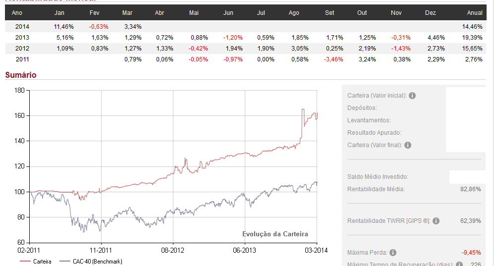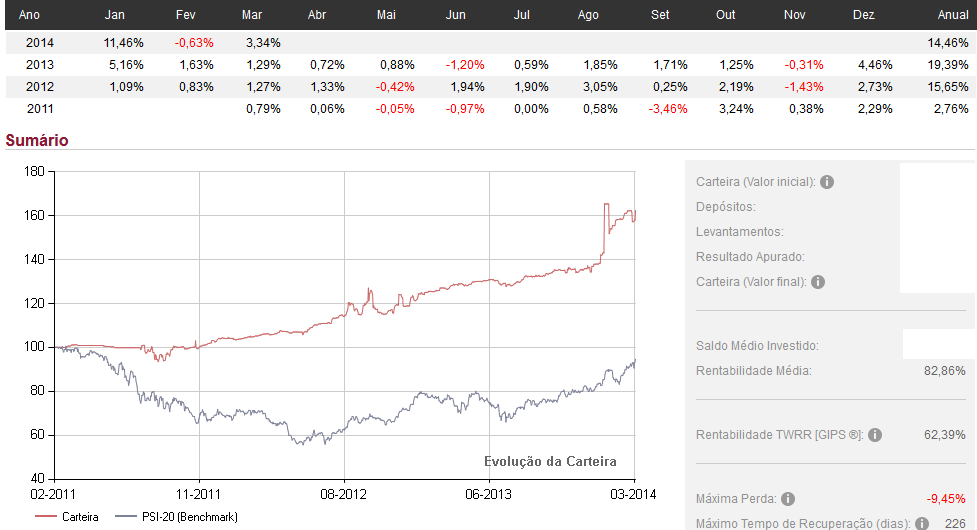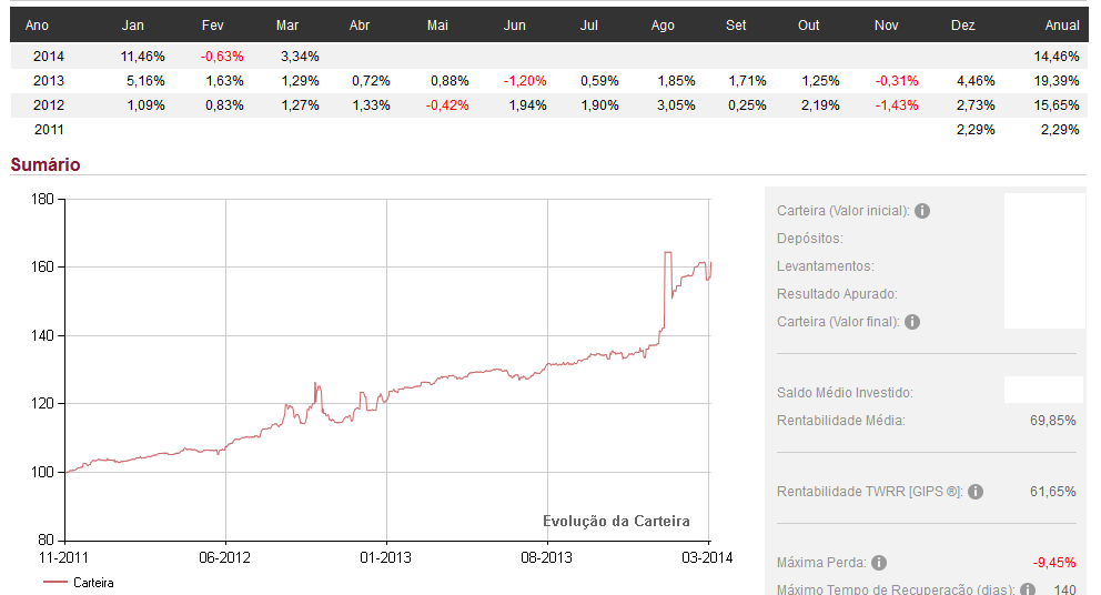 Nota: A "Creation Date" é a data de criação da carteira no software, mas a carteira iniciou-se no final de 31/Dez/2013.