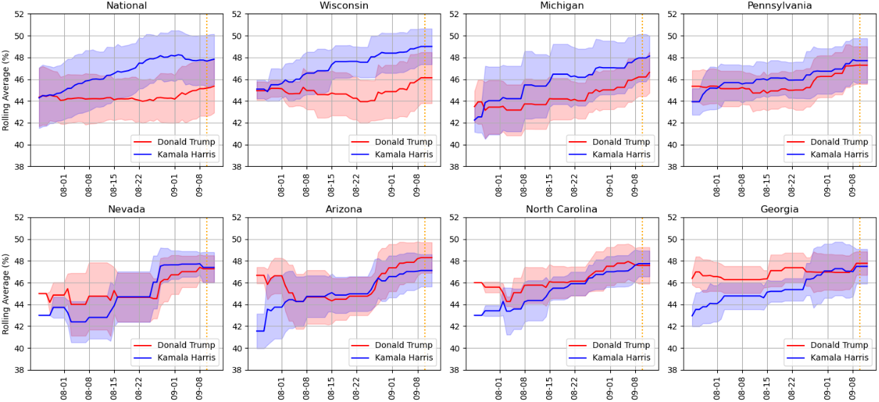 Desta vez, ele está à frente de Kamala Harris com mais de 5 milhões de votos.