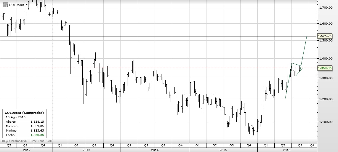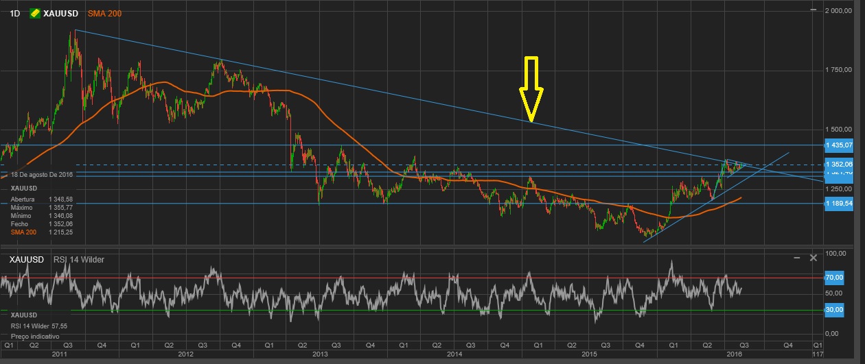 Ouro numa zona importante. A vir abaixo dos 1300 ficarei bear.
