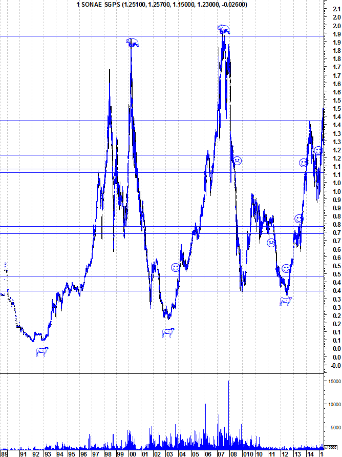 A cotada mantém-se a namorar o suporte dos 1.29... Será que isto da NOS poderá levar a afundar um pouco a SONAE até ao suporte seguinte? Ou espera-se que arranque para Norte mais dia menos dia, a partir daqui?