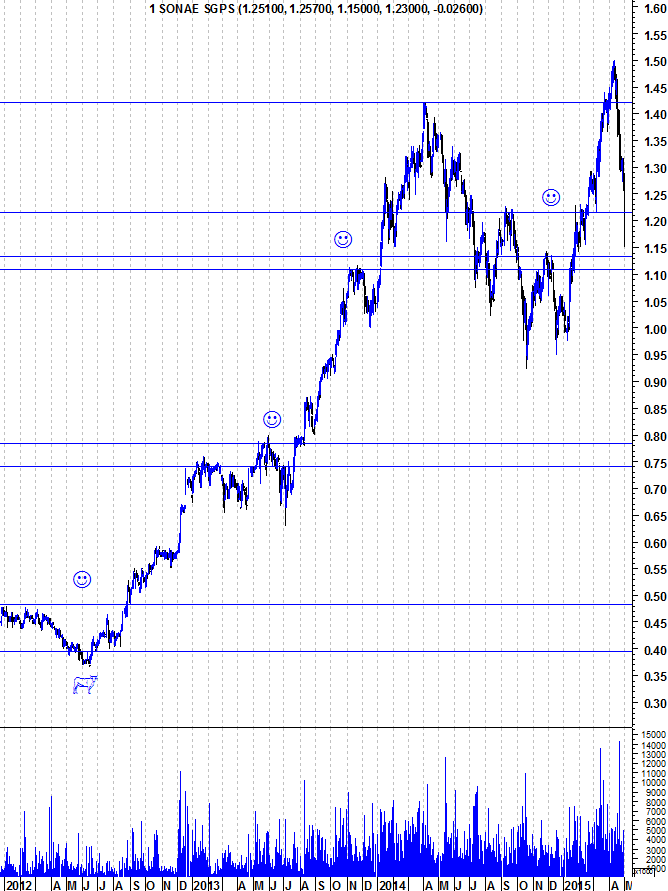 O dia de hoje tem uma volatilidade anormal na Sonae SGPS. Eu costumo esperar pelo final dos dias para tirar conclusões pois, algumas vezes, sucedem coisas como aconteceu hoje com a Sonae, com um despejo de acções e recuperação. Pode até estar a construir uma bela de inversão, com forte volume.