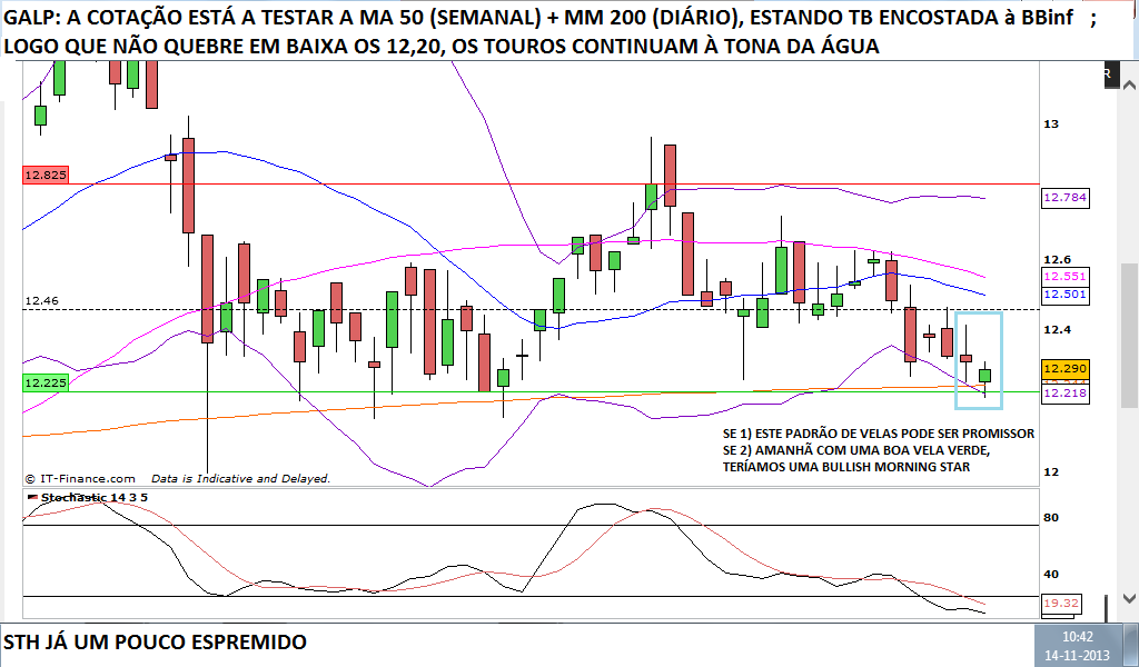 talvez va testar a linha de suporte dos 11.30€ tem a resistencia nos 13.10€, no entanto ta com tendencia descendente, se o suporte se verificar resistente e nao romper pode ser interessante comprar por essa zona e vender perto dos 13€, vou ver pra ja estou fora