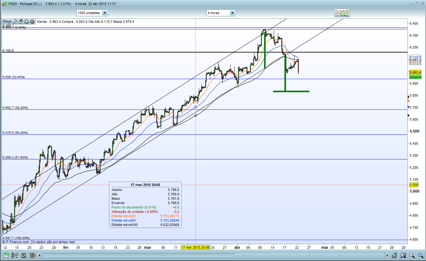 O que consigo ver sim é um breakout no canal das 4h do PSI 20 com projecção máxima para perto dos 5850-5880. Acredito sinceramente que vai falhar o target por muito pois tem os 23,6% a 5940 e um forte suporte a 5900.