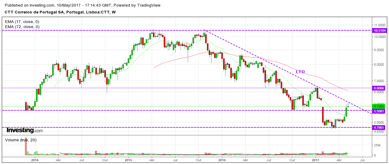 Assim que surgirem essas expectativas de receitas e lucros verticais , no gráfico os investidores levariam o titulo a quebrar a LTD com consistência, e os curtos a fechar após ultrapassado esse ponto e seria um claro sinal de entrada .