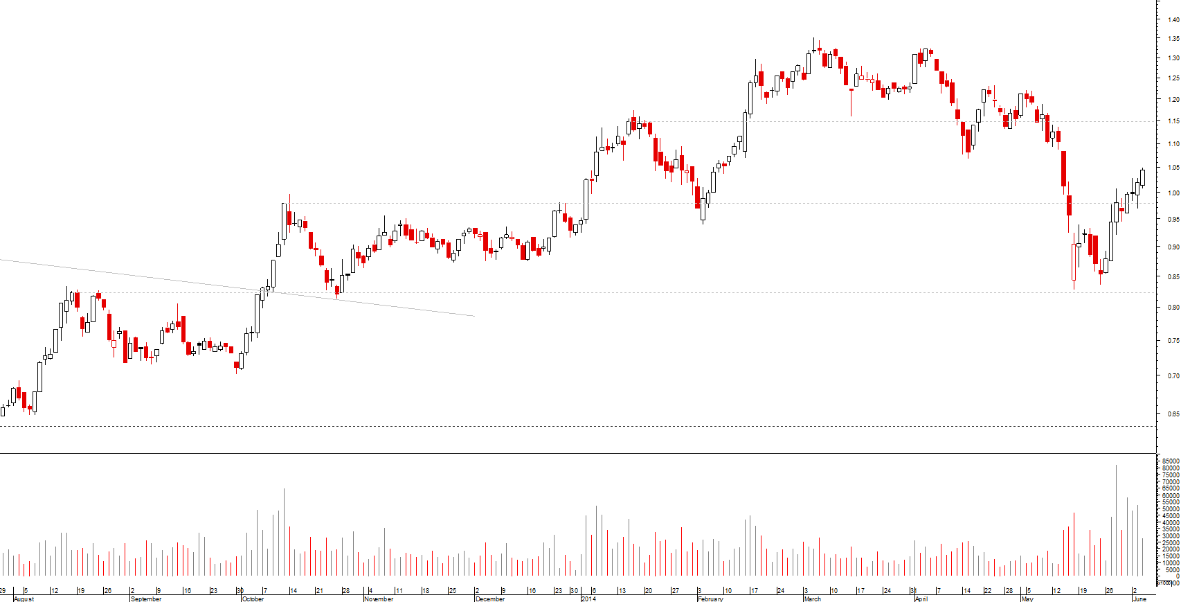 O meu target para os próximos dias é por volta dos 1,06~1,07. Apesar de no diário haver uma resistência nos 1,04... com estes volumes não vejo outra maneira que não seja um derreter de resistências antigas.