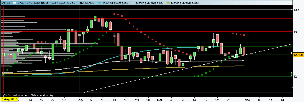 A GALP anda há um ano a lateralizar entre os 11,4 e os 13,20 no entanto a cotação tem sido suportada por uma LTA que vem de Junho de 2012.